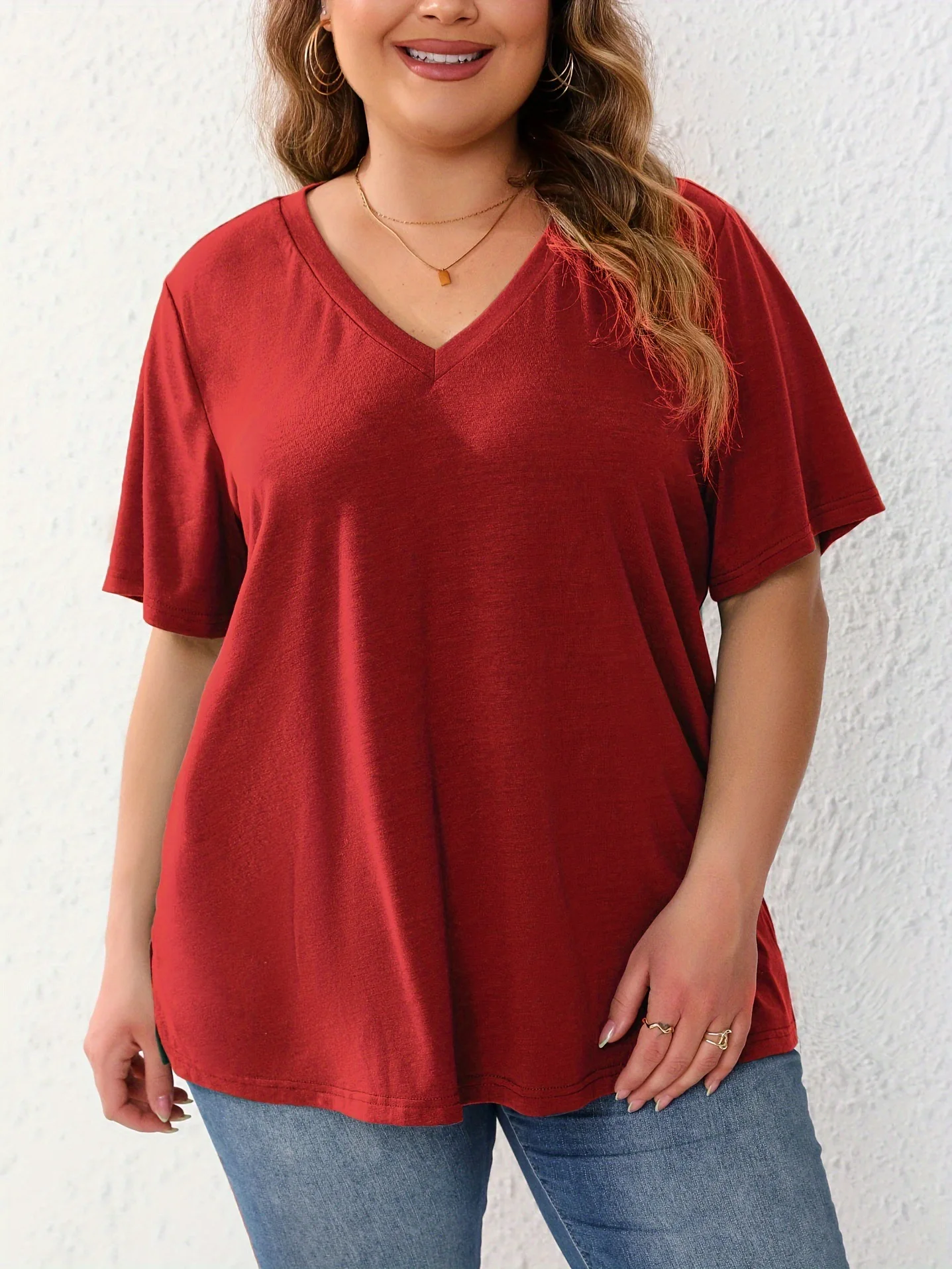Plus Size V-Neck Short Sleeve